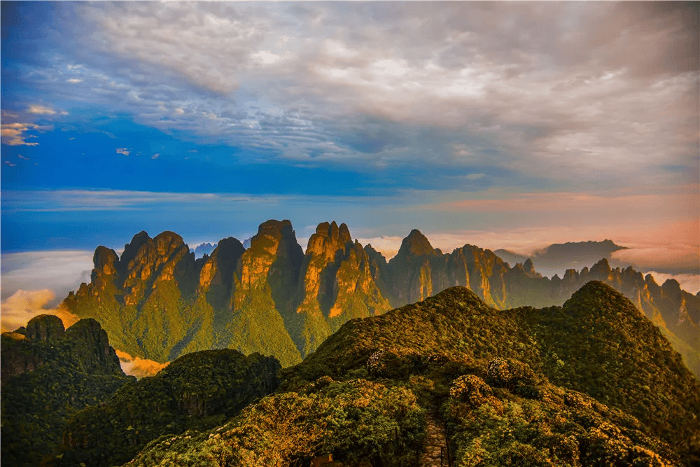 华南之巅观景台欣赏日出—漓江之母溯源线路徒步—漓江源大峡谷(招摇谷)探秘▲ “华南之巅”桂林兴安猫儿山 图/雷鑫莹 摄