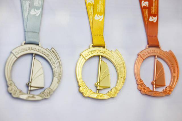奖牌四周奔涌环绕的浪花,与中央的帆板主体遥相呼应,旋转的帆板瞬间将比赛的动态场景凝固于方寸之间。它让风“活”起来,让海浪“动”起来,获奖者指尖轻触,便可重温赛场上驭风而行的快感与自由,寓意着体育精神永不停息,人生征程不断向前。