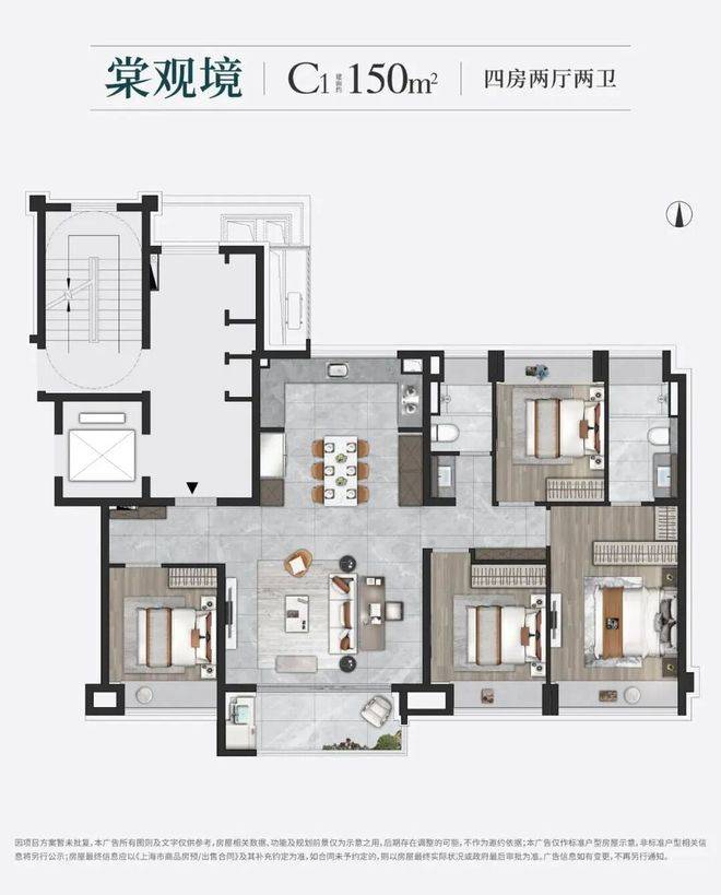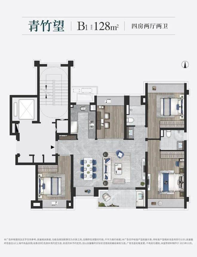 约128㎡4房2卫户型是约99㎡的升级版,四房更能保障业主的全生命周期需求。5飘窗+1阳台+更加宽绰客餐厅,整个户型非常适合改善型的客户居住,一步到位