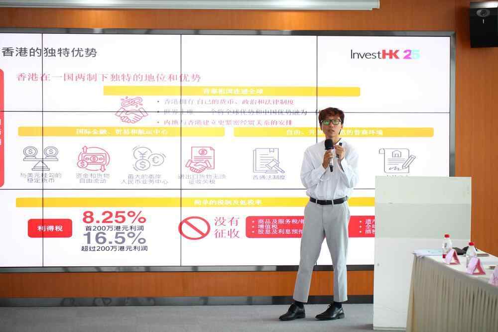 “香港作为国际金融中心,凭着世界顶级的专业服务、资金和高端人才汇聚,吸引来港建立供应链管理中心、国际业务总部、财资中心等,以支持企业在港的国际业务发展。”活动现场,香港驻粤办副主任叶海崙从粤港协同角度,介绍了驻粤办在促进两地经贸合作、为内地企业赴港提供支援服务的核心职能。而香港投资推广署相关负责人,在活动中详细解读了香港的独特优势,以及科技研发、营销业务、公关支援、拓展业务网络、人才来港等服务及政策,相关服务及政策,将有助于内地企业在香港开设公司并拓展业务,通过香港打通国际市场。