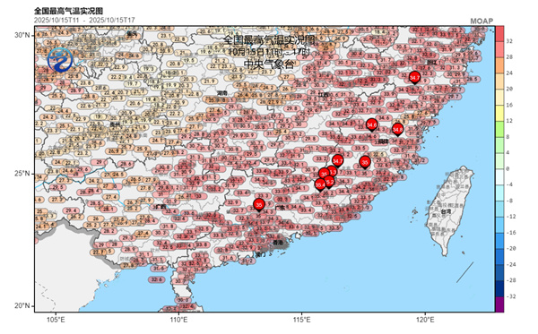 今天在南方一些地方,也确确实实是热,像上海、浙江、福建、广东、海南、广西东部等地午后气温还超过了30℃。