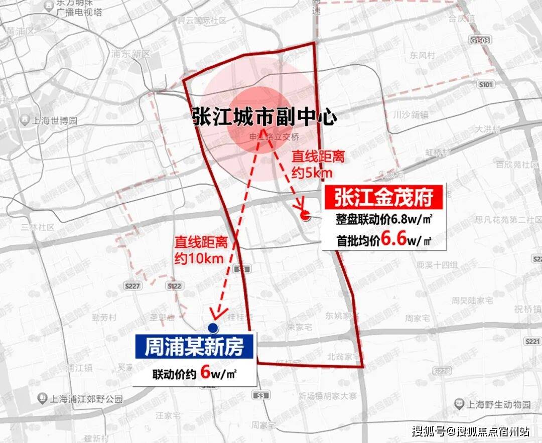 约5km,坐拥张江前排置业地理位置,与周浦某些新房相比,不仅距离优势明显,价差也不明显,基本属于同总价段。