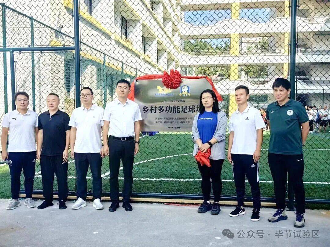 管相杰(左四)联引奇安信公益基金会为织金县第二小学捐赠的乡村多功能足球场建成并投入使用(图片由受访者提供)