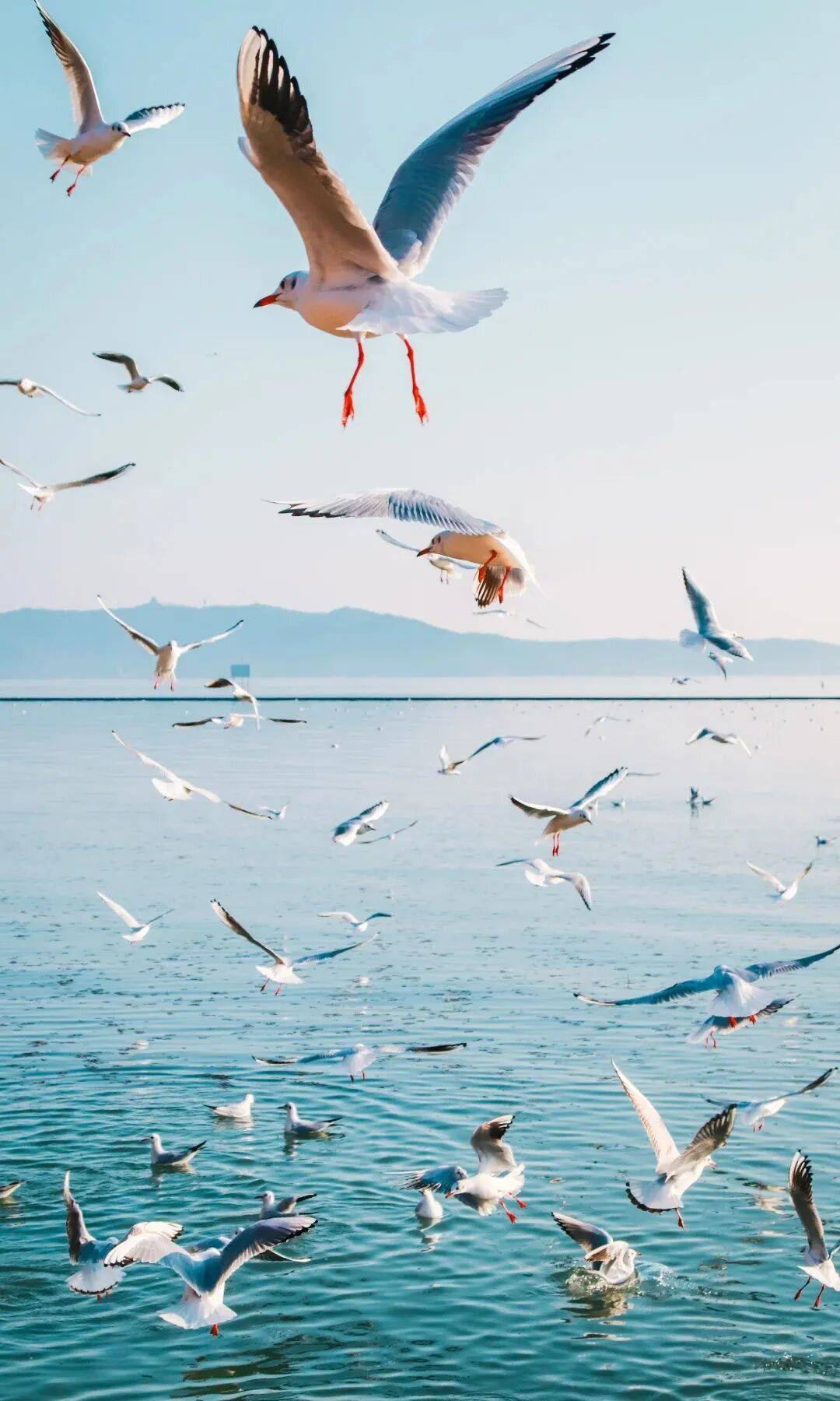 水天一色,红嘴鸥展开雪羽,振翅、盘旋,或是停下休憩,这些红嘴鸥十分“呆萌”。