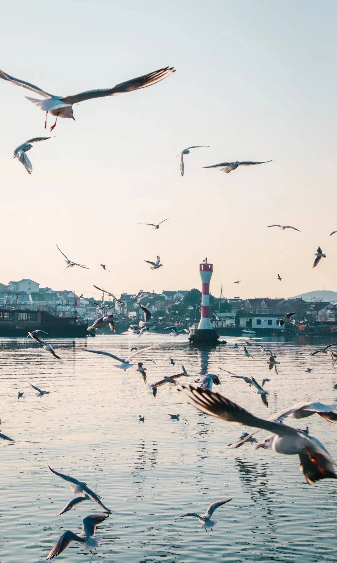 太湖一带,尤其是光福,码头、浅滩、甚至渔船边,无论日出、日落,都会聚集着成片的红嘴鸥,现在,就是去看它们最好的时候。