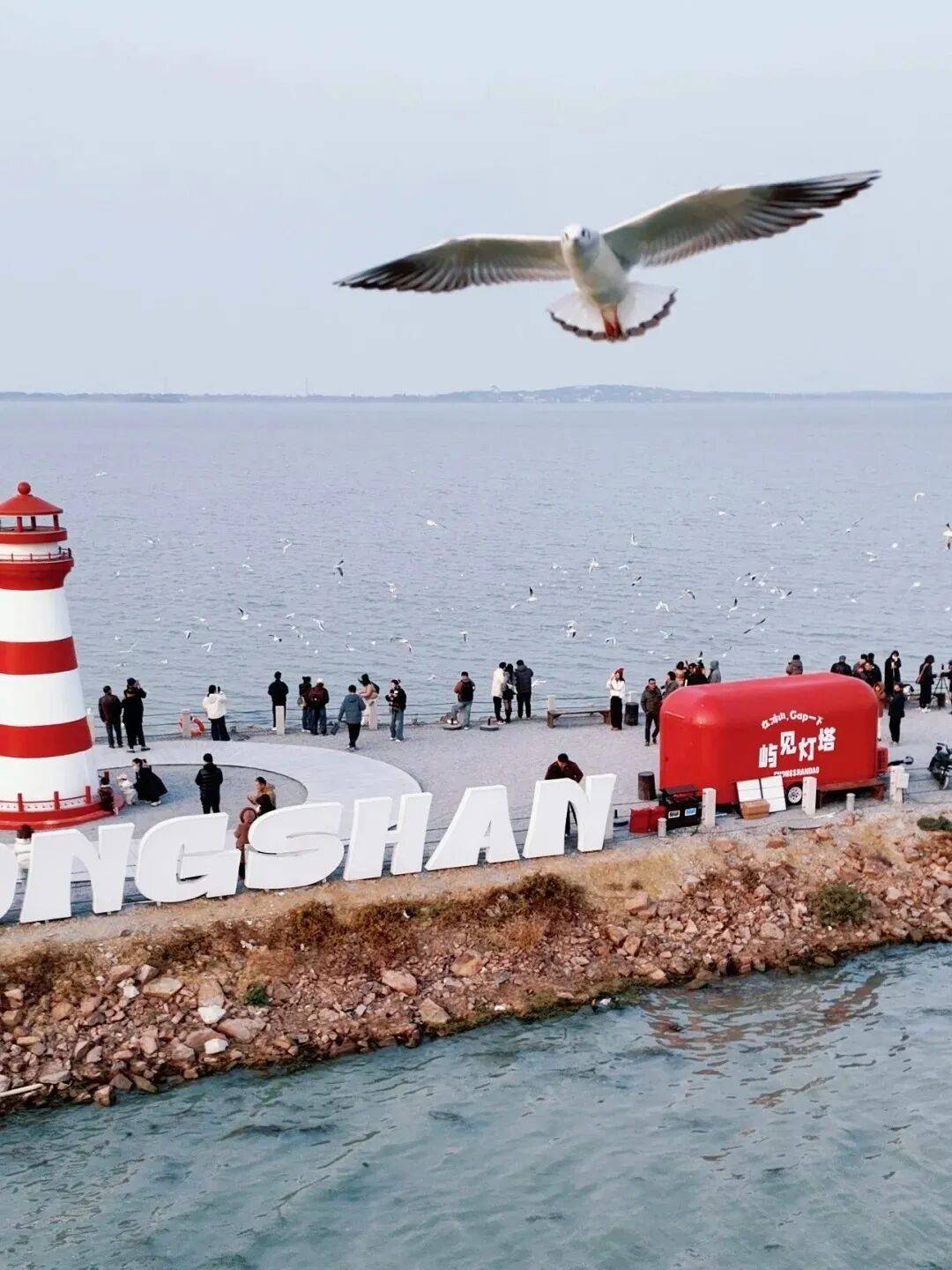 冲山岛灯塔延伸出一条一公里长的堤坝,走到尽头就是灯塔,视野开阔海鸥群多,游船和帆船的造景还有远处的山,诗意满满,灯塔出片~