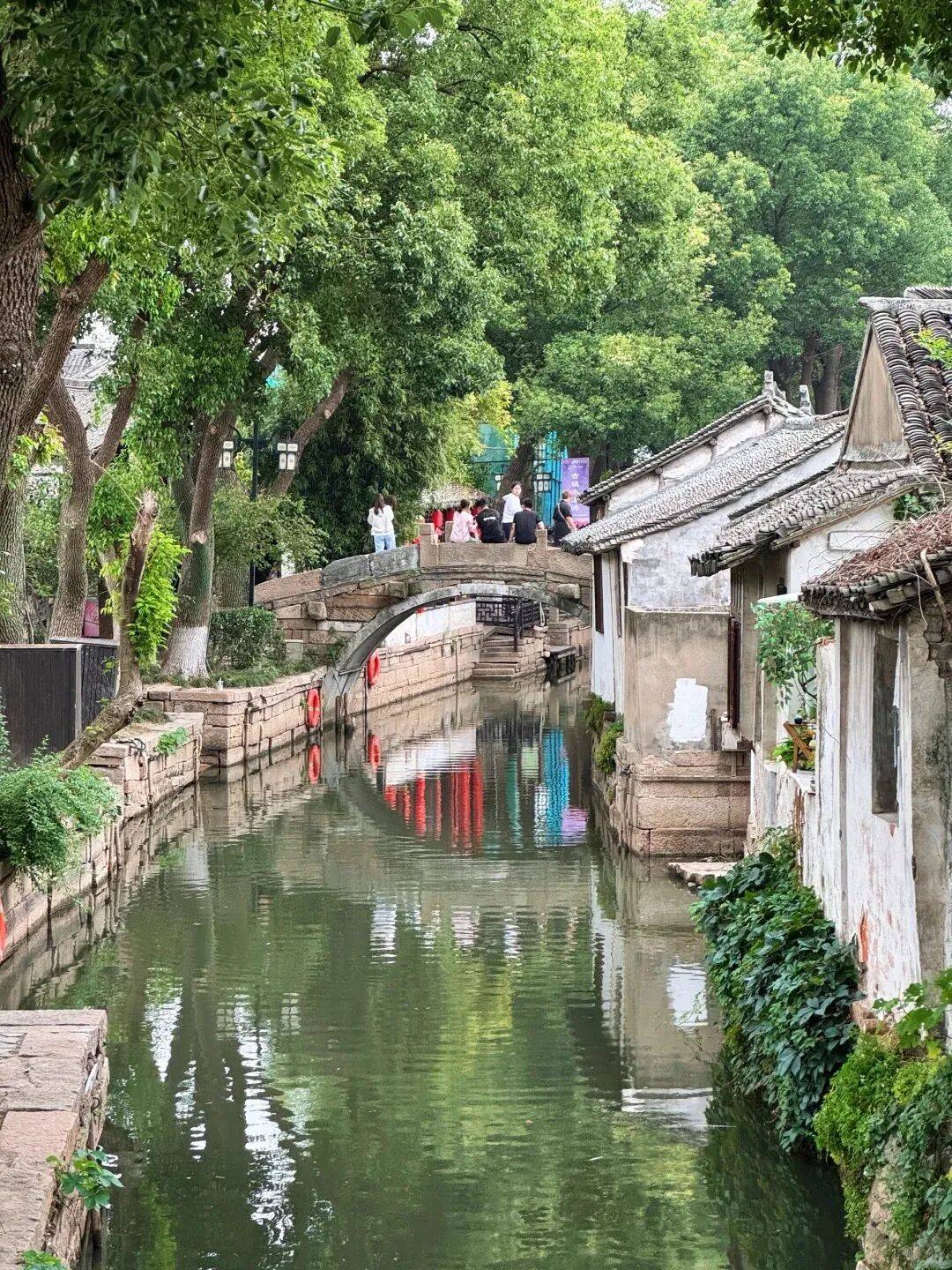 10:00到达【甪直古镇】一进古镇便看见蜿蜒的河道上,两岸是绵长的廊棚,挂着些许红灯笼。脚下的青石板路被岁月磨得光亮,蜿蜒通向深处。“七十二座半桥”的传说就在这里。你可以跟随领队的指引,去寻找三元桥、万安桥这些宋代遗存,看桥联石刻,触摸历史的纹理。也可以完全自由探索:拐进一条僻静的水巷,看当地居民在河边浣洗,生活如水般平淡流淌。