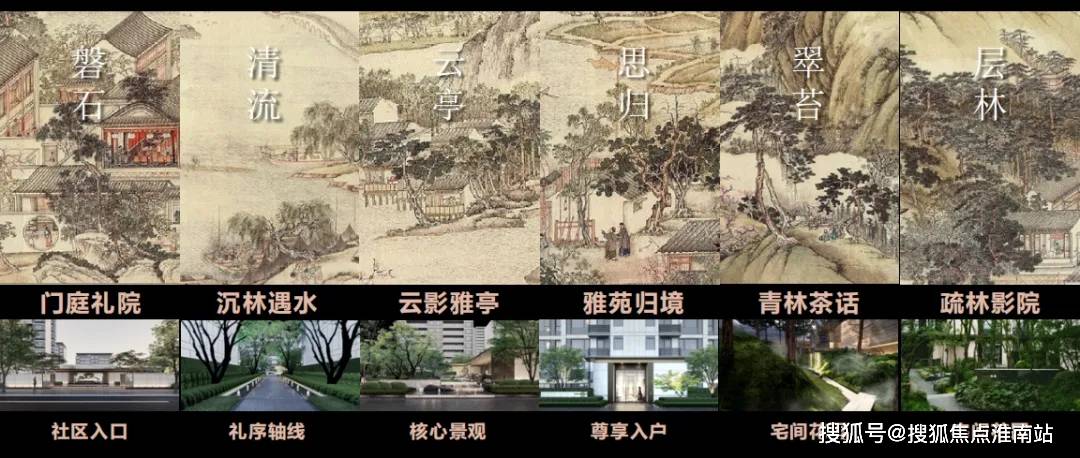 保利·姑苏瑧悦,大区设计灵感起源于《姑苏繁华图》,运用曲直、引隔、围透、藏露等造园手法,在有限空间内实现以小见大、步移景异的游园体验。将六大雅趣生活场景,植入到项目的景观设计中。以苏州古典园林造园手法,结合东方文人雅集,打造当代生活雅集。