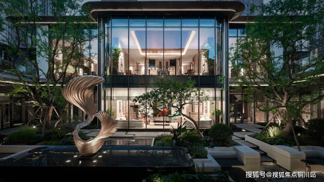 一轴两园多庭规制,滨水栖居之地,江潮漫游生活情境在眼前铺展。下沉式流水庭院,演绎着⼀幕幕悠闲水岸生活剧情。