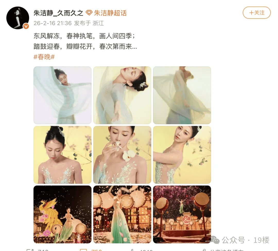 16日晚,朱洁静发文:东风解冻,春神执笔,画人间四季;踏鼓迎春,瓣瓣花开,春次第而来…