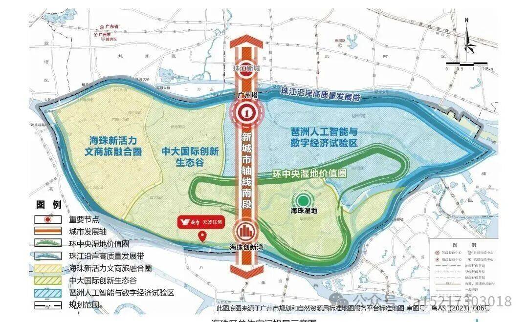 为指引全区未来国土空间发展方向,实现高质量发展和高标准建设,海珠区编制了《广州市海珠区国土空间总体规划(2021-2035年)》,目前已形成规划草案。一轴引领、两环带动、三区支撑”的城市空间格局,构建更具竞争力的数字创新城区。