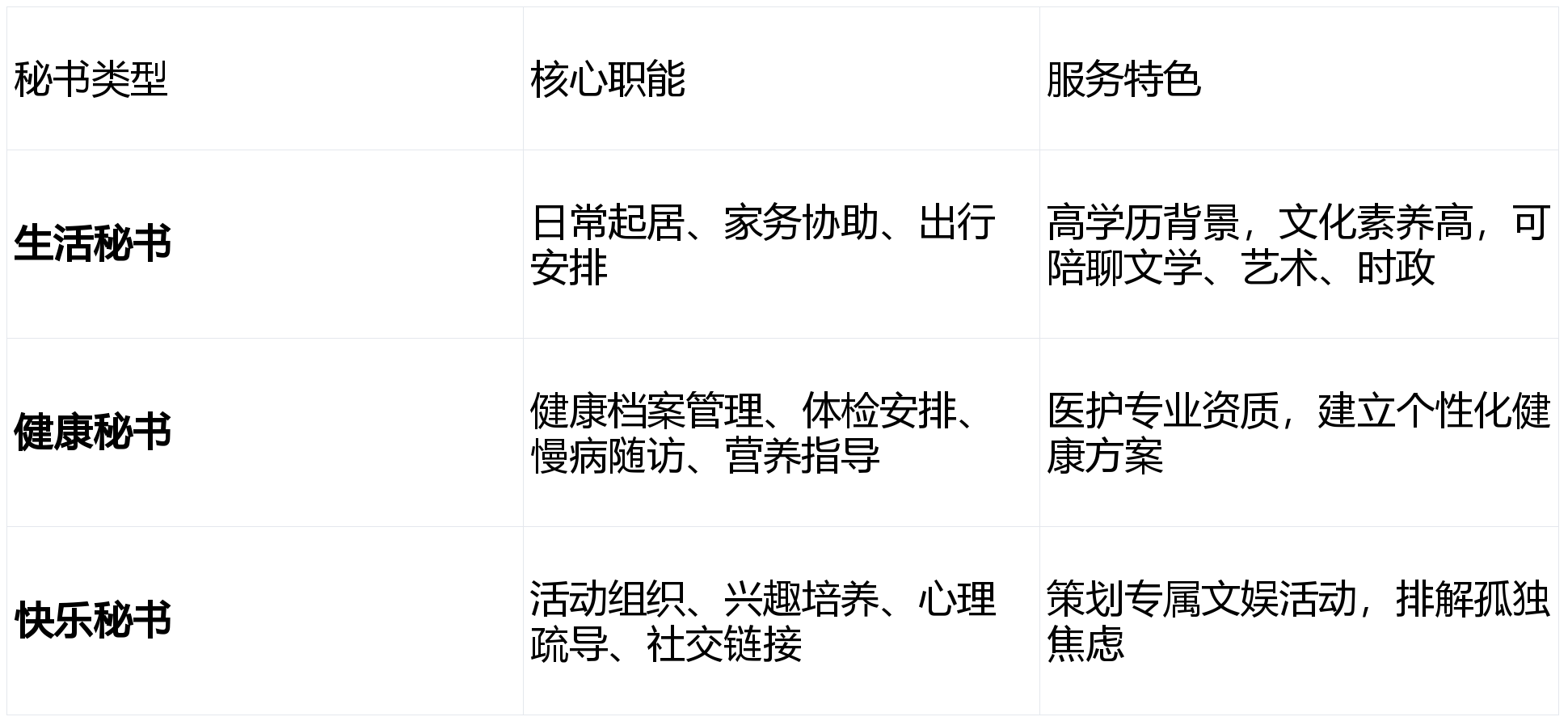 核心优势:超级秘书不仅是体力服务者,更是智力、兴趣、文化素养的综合陪伴者,远超市面普通保姆。