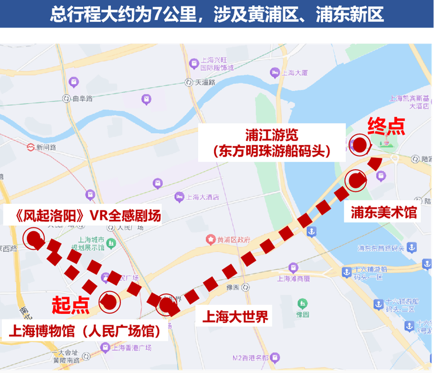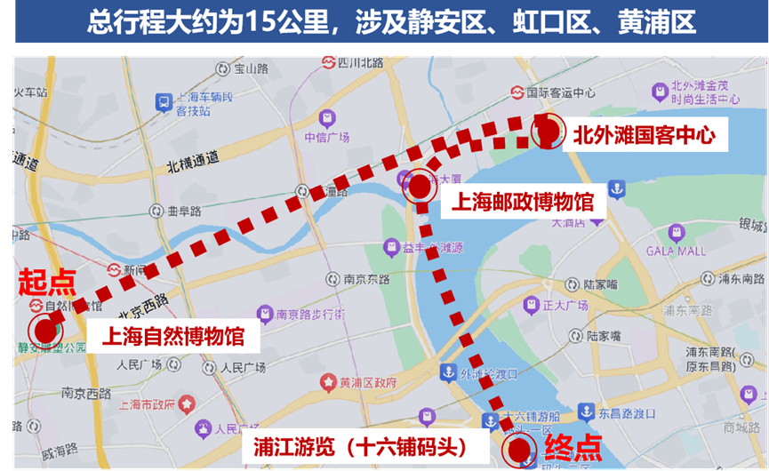 线路简介:领略先进文化汇流、多元文化融合的黄浦江滨江人文故事。从“海派文化发祥地、先进文化策源地、文化名人聚集地”走来,在“一江一河”交汇处看见城市过去,乘黄浦江游船畅想城市未来。